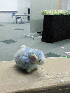 写真は同じ部屋で展示をしていた方からお嫁にいただいた羊さんです。ちょっと親元を離れ淋しそうですが、後で他の仲間もいただいたので、家で仲良く並べています♪