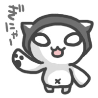 01シリーズのグッズ他に、猫のイラストのものも販売しているのですが、その中にちょっと他の猫と異色のカンバッジがありまして。この猫(?)なのですが、実は5、6年前に考えたキャラクターだったりします。名前は「ぎにゃー」といいまして、当時部活の毎月の予定表等にちょこちょこのせていたキャラクターです。
